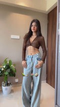 Sky Blue Color Sequins And Thread Embroidery Work Belt Fendi Lehenga Choli