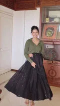 Mustard Color Sequins And Thread Embroidery Work Vichitra Silk Lehenga