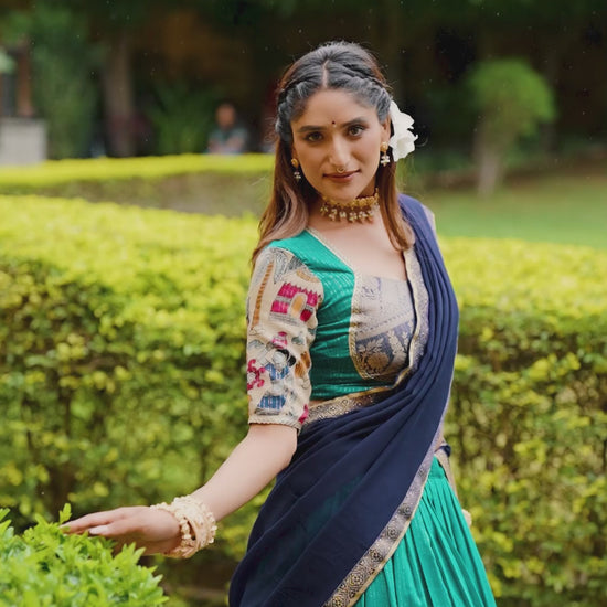 Bottle Green Color Kalamkari Print With Zari Weaving Work Poly Chanderi Lehenga Choli