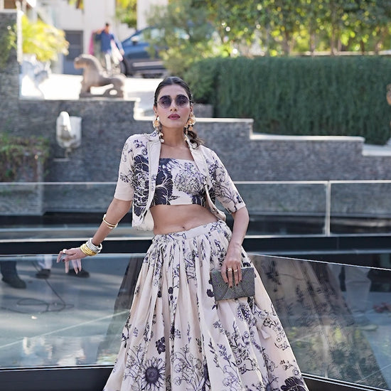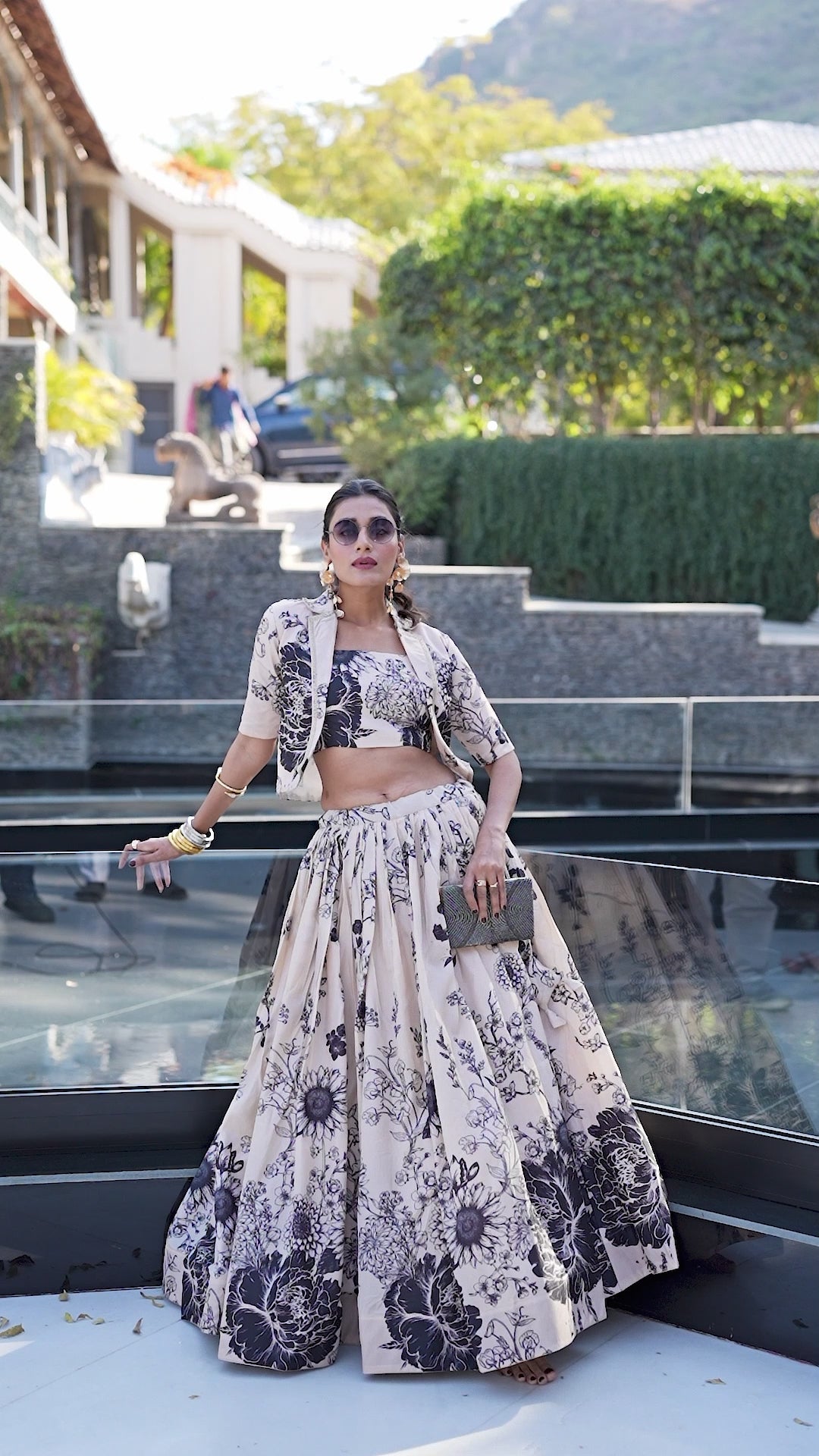 Cream Floral Print Tussar Silk Co-ord Set lehenga Choli