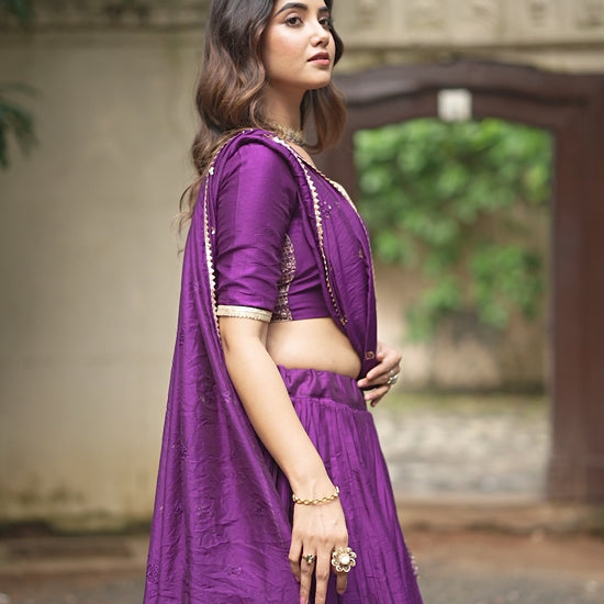 Dark Purple Color Plain With Zari Weaving Work Chanderi Lehenga Choli