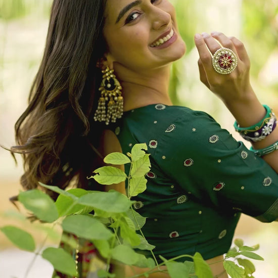 Green Color Kalamkari Print With Foil Work Tussar Silk Lehenga Choli