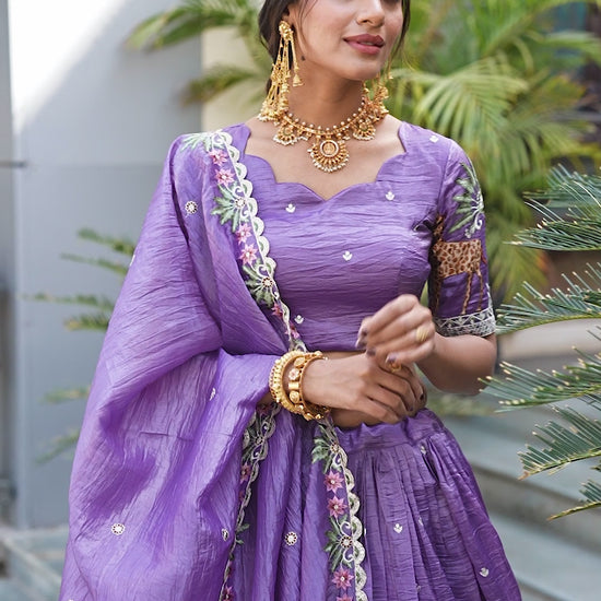 Lavender Color Sequins and Thread Embroidery Work Gold Crush Lehenga Choli