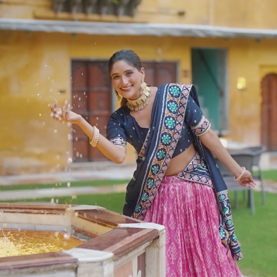 Light Pink Color Ikkat Patola Printed Tasar Silk Lehenga Choli