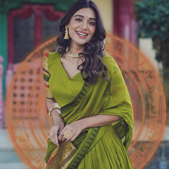 Mehandi Color Plain With Zari Weaving Work Chanderi Silk Lehenga Choli