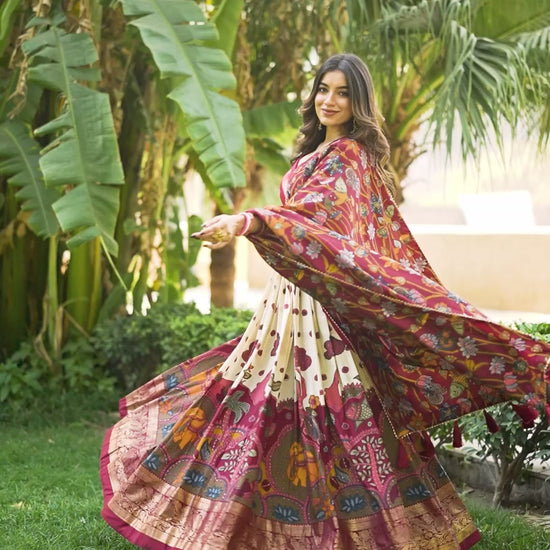 Infuse Your Wardrobe with Southern Grace—Tussar Silk Kalamkari Print Lehenga Choli Featuring a Sophisticated Foil Work Border 🪷