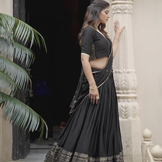 Black Color Plain With Zari Weaving Work Chanderi Lehenga Choli