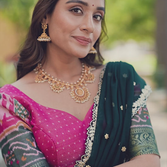 Pink Color Printed With Zari Weaving Work Kanchipuram Lehenga Choli