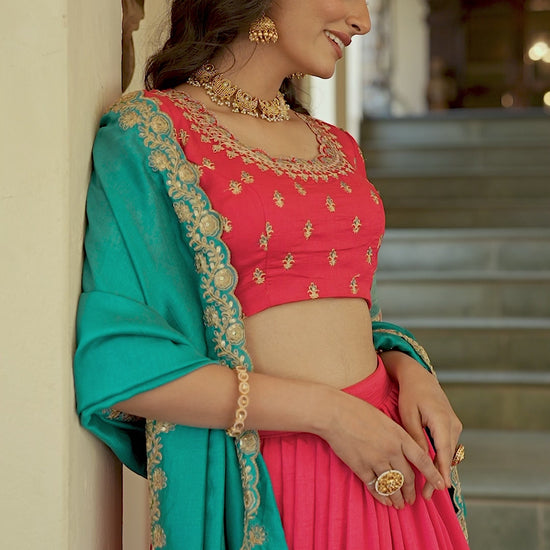 Pink Color Zari Weaving Work Lace Border Vichitra Silk Lehenga Choli
