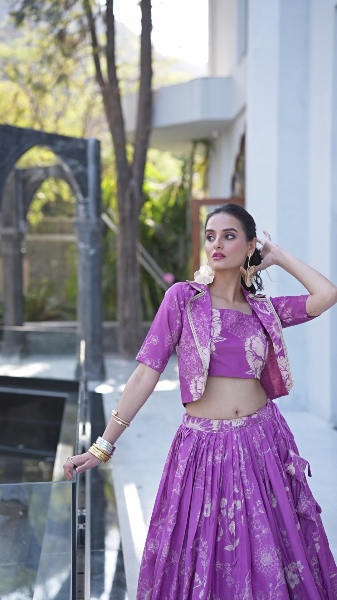 Purple Floral Print Tussar Silk Co-ord Set lehenga Choli