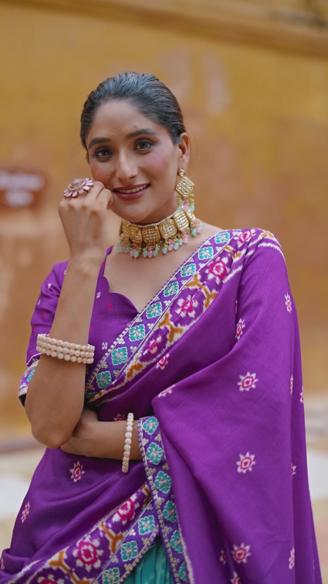 Sky Blue Color Ikkat Patola Printed Tasar Silk Lehenga Choli