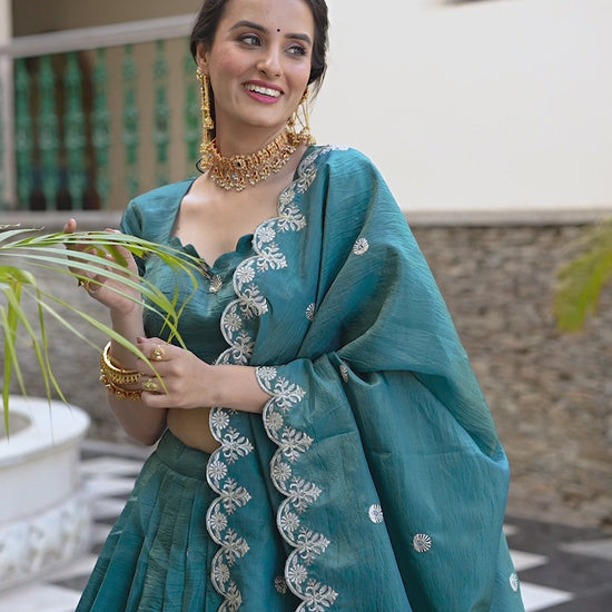 Teal Color Sequins and Thread Embroidery Work Gold Crush Lehenga Choli