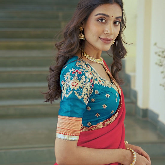 Teal Color Zari Weaving Work Lace Border Vichitra Silk Lehenga Choli