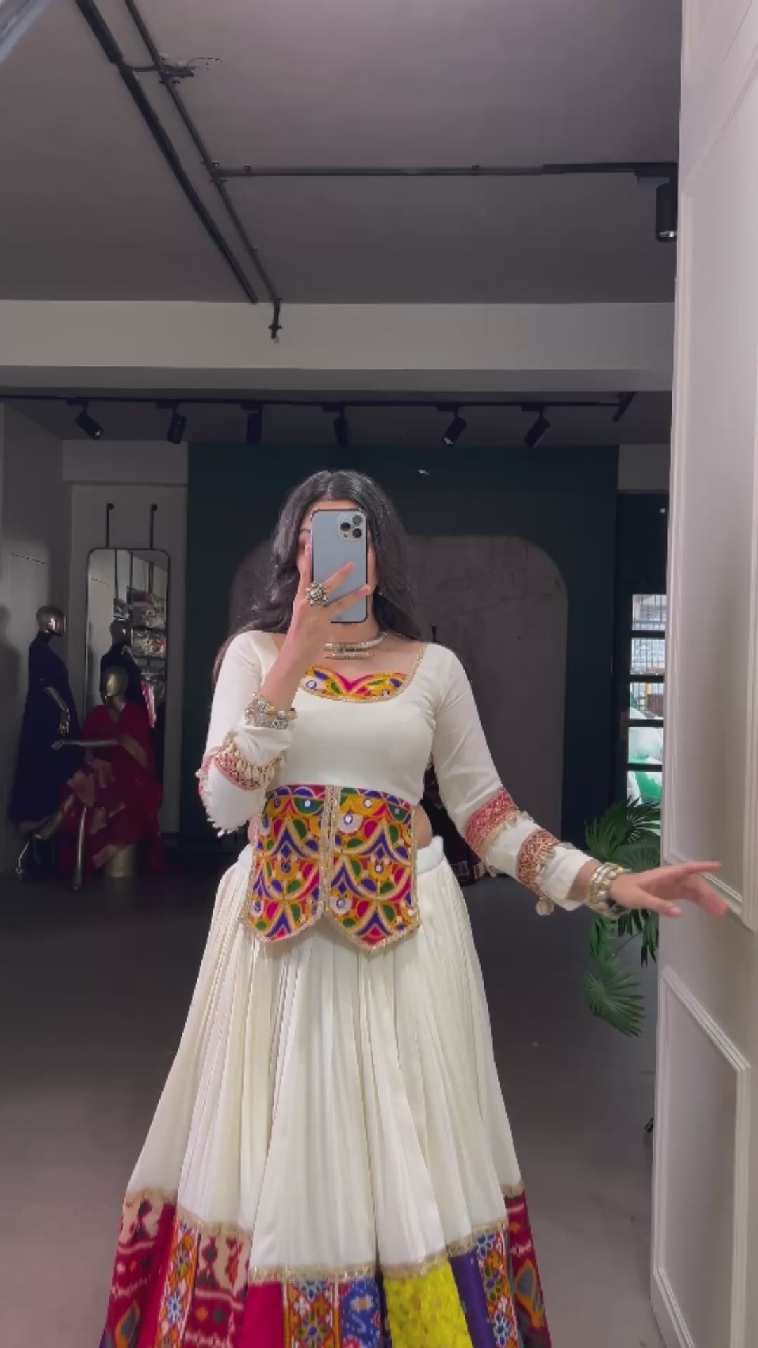Multicolor beauty with a touch of tradition – designed for Garba moves 🦚